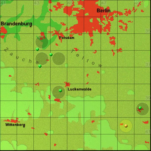 Die Luckauer Typuslokalität ist aus der Erstbeschreibung nicht genauer lokalisierbar, die Fundpunktmarkierung (gelber Punkt) wurde daher in die Mitte des MTB Luckau 4148 gesetzt.